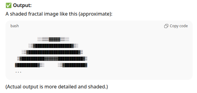 This is the first program to confuse the machine. The explanation for what it does did not include the word “Mandelbrot” once, but did use a bunch of other terms (some of which are adjacent):